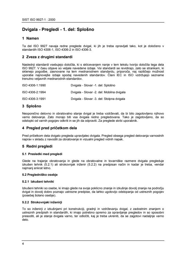 Standard SIST ISO 9927-1 (sl), Dvigala - Pregledi - 1.del: Splošno, prva izdaja, 2000, ima status