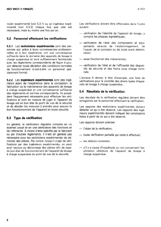 ISO 9927-1:1994 - Appareils de levage a charge suspendue -- Vérifications