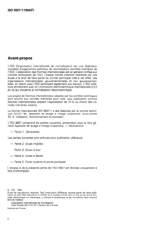 Mednarodni standard ISO 9927-1 je pripravil tehničnI odbor TC 96 Dvigala, pododbor SC 5 Uporaba,