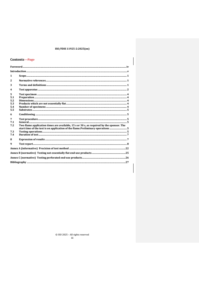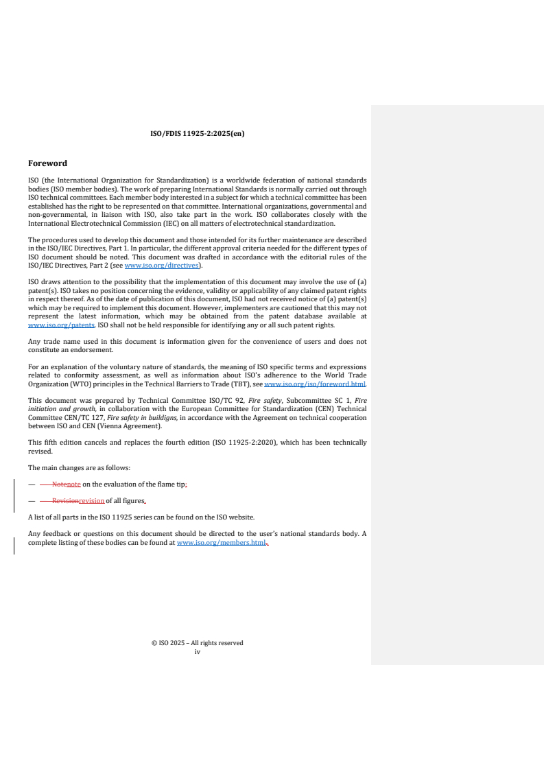REDLINE ISO/FDIS 11925-2 - Reaction to fire tests — Ignitability of products subjected to direct impingement of flame — Part 2: Single-flame source test Released:28. 07. 2025
