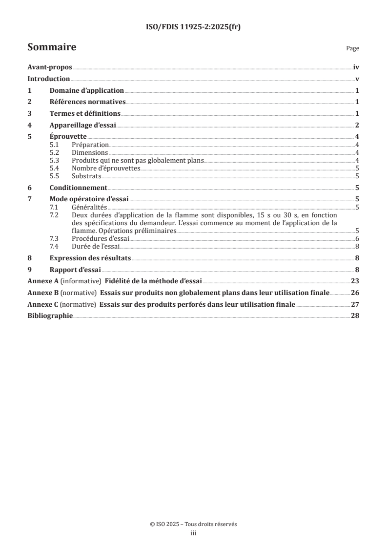 ISO/FDIS 11925-2 - Essais de réaction au feu — Allumabilité de produits soumis à l’incidence directe de la flamme — Partie 2: Essai à l’aide d’une source à flamme unique Released:27. 08. 2025