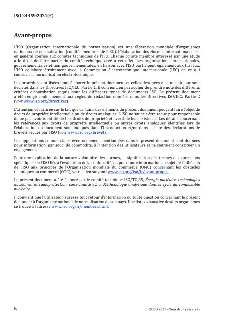 • Documents produced by ISO/TC 85 (Nuclear energy, nuclear technologies and radiological protection) and guidance on certified reference materials and uncertainty evaluation are complementary to ISO 24459:2021. Users should also follow applicable national radiological protection and transport regulations when implementing the method.