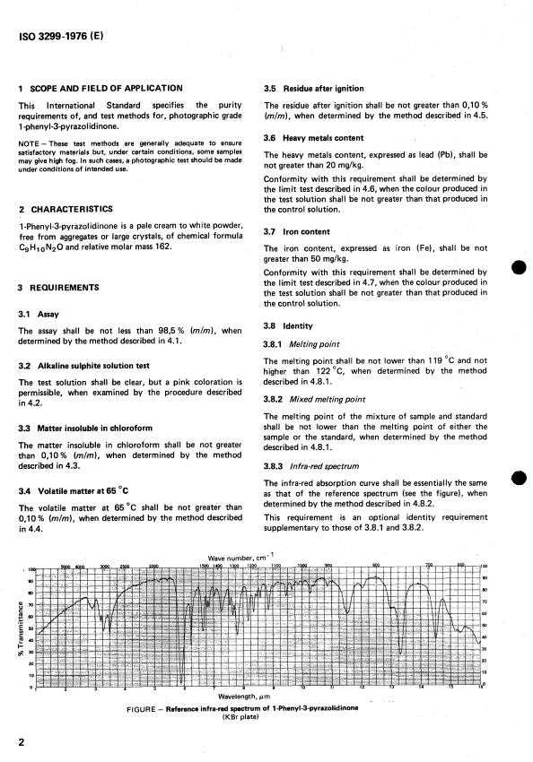 ISO 3299:1976 - Phényl-1 pyrazolidinone-3 (Phénidone) de qualité photographique -- Spécifications
