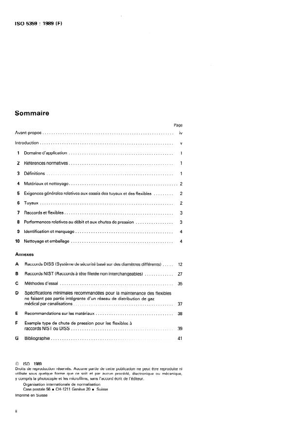 ISO 5359:1989 - Flexibles basse pression (flexibles) utilisés dans les systemes de gaz médicaux