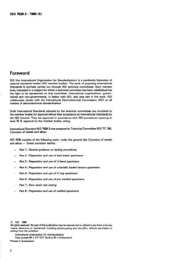 ISO 7539-3:1989 - Corrosion of metals and alloys -- Stress corrosion testing