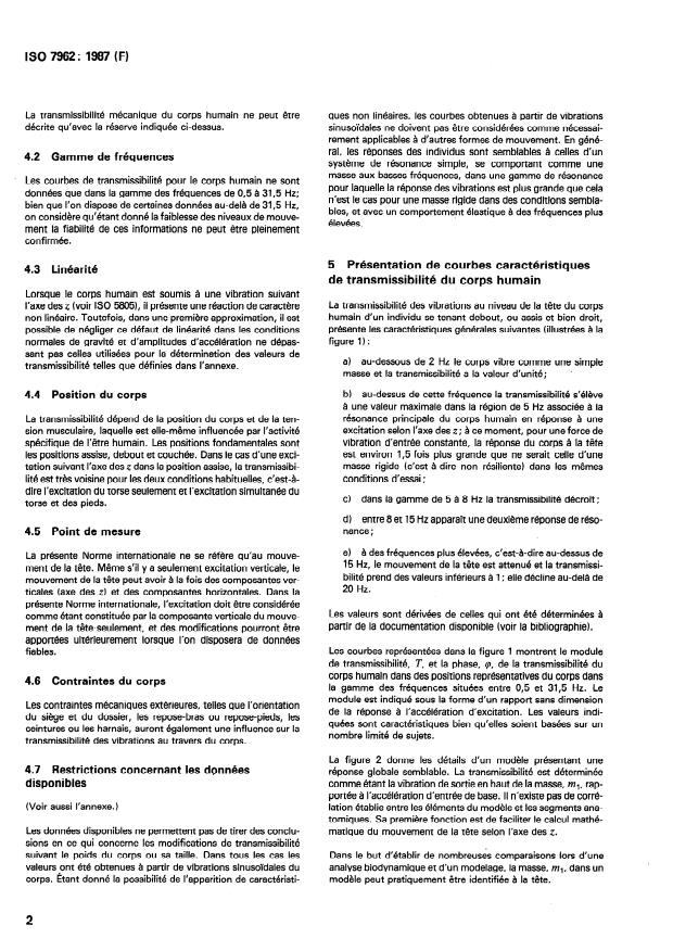 ISO 7962:1987 - Vibrations et chocs mécaniques -- Transmissibilité mécanique du corps humain suivant la direction z