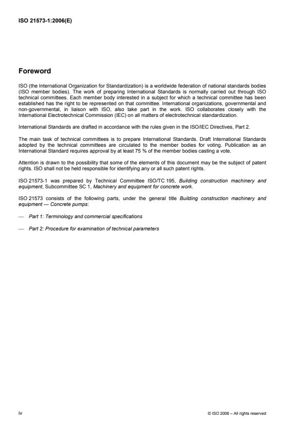 ISO 21573-1:2006 - Building construction machinery and equipment -- Concrete pumps