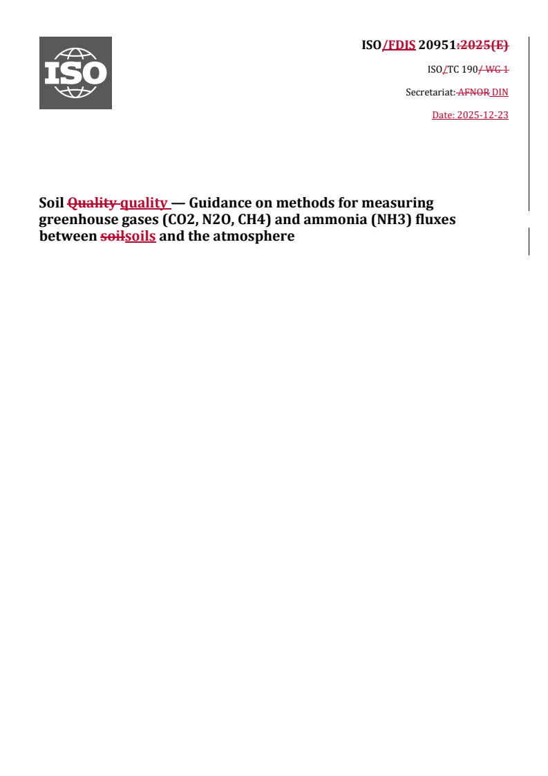 REDLINE ISO/FDIS 20951 - Soil quality — Guidance on methods for measuring greenhouse gases (CO2, N2O, CH4) and ammonia (NH3) fluxes between soils and the atmosphere Released:5. 01. 2026