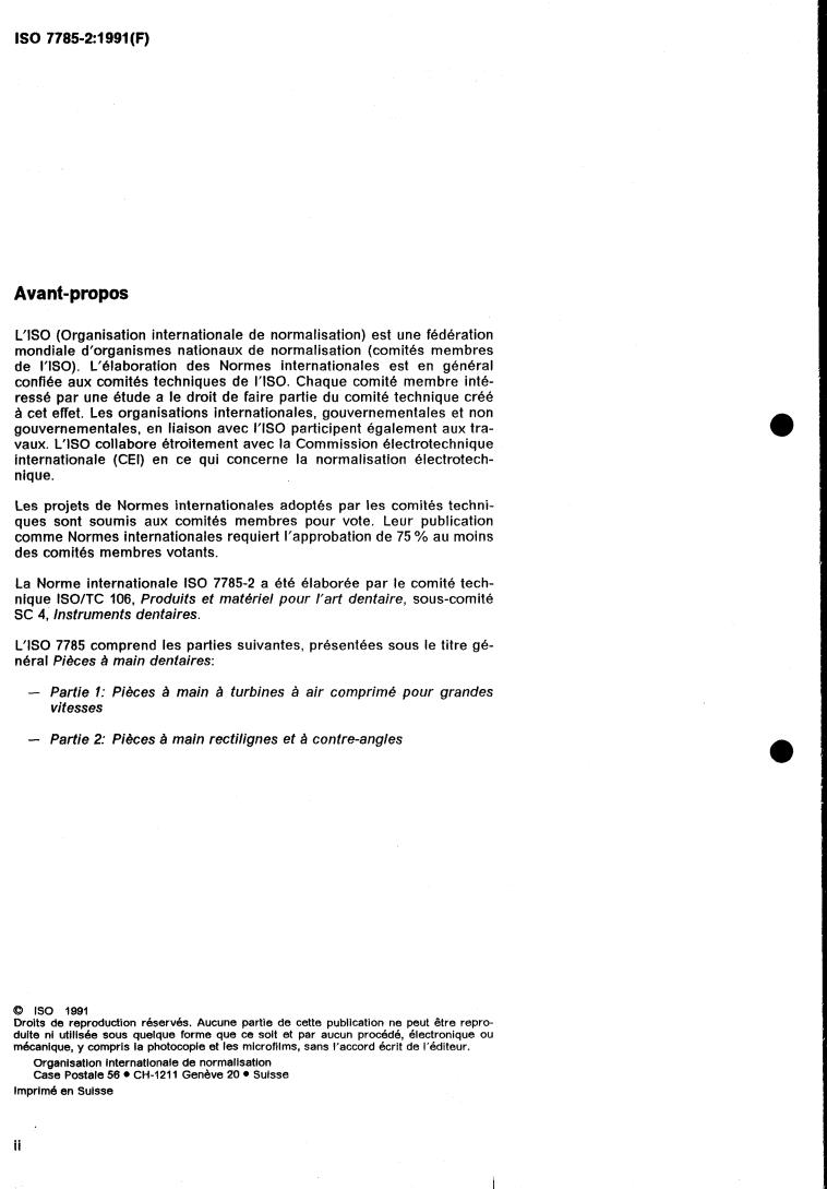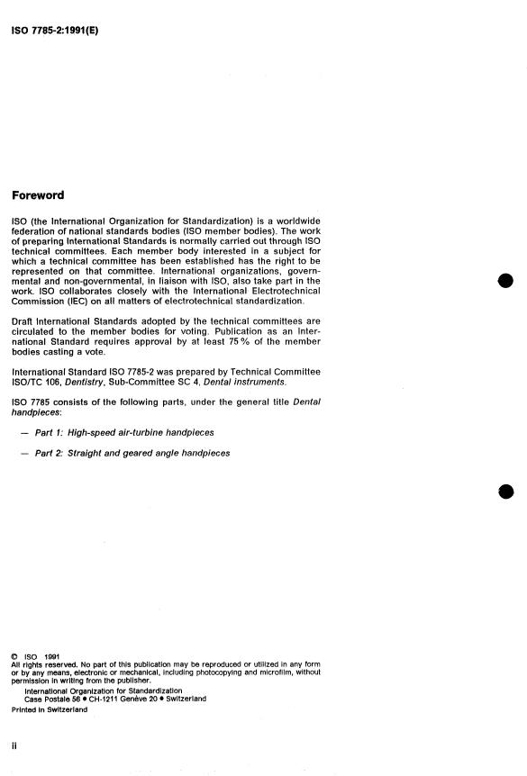 ISO 7785-2:1991 is a standard published by the International Organization for Standardization (ISO). Its full title is "Dental handpieces — Part 2: Straight and geared angle handpieces". This standard covers: Dental handpieces — Part 2: Straight and geared angle handpieces