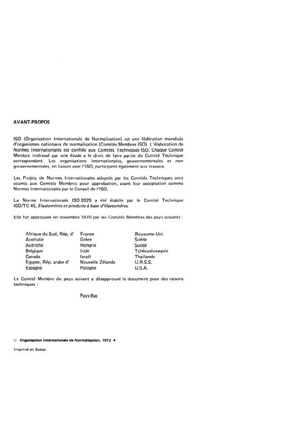 ISO 2025:1972 is a standard published by the International Organization for Standardization (ISO). Its full title is "Lined industrial rubber boots with general purpose oil resistance". This standard covers: In the Annex are specified sampling conditioning of the test pieces, temperature and duration of the test and immersion liquid, size of the test piece, apparatus and procedure. A formula is given to calculate the change in volume.