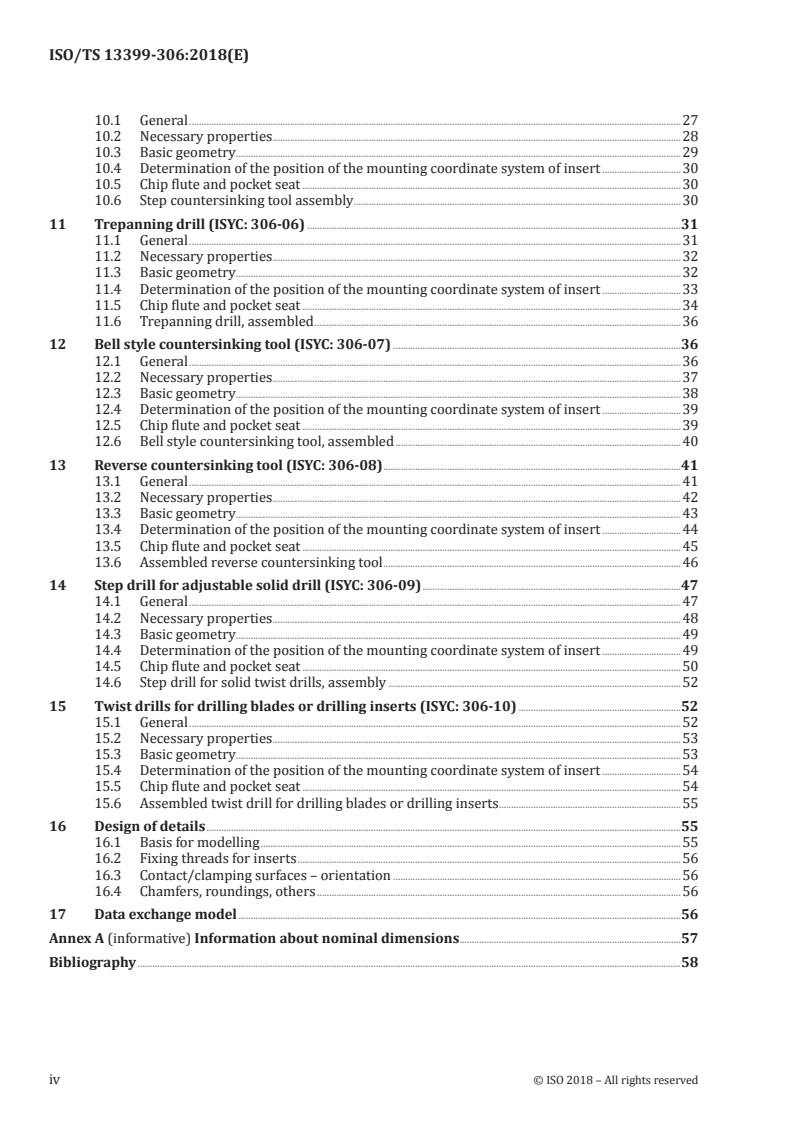 - Part of the ISO 13399 family (cutting tool data representation and exchange). ISO/TS 13399-306:2018 focuses specifically on drills and countersinking tools for indexable inserts; other parts of ISO 13399 cover additional tool types, data dictionaries and exchange formats.