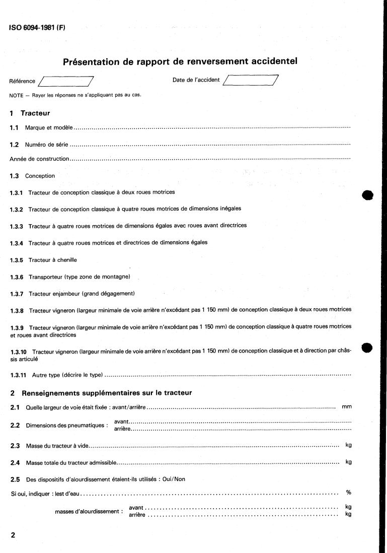 This International Standard specifies a form for the uniform reporting of overturning accidents of agricultural and forestry