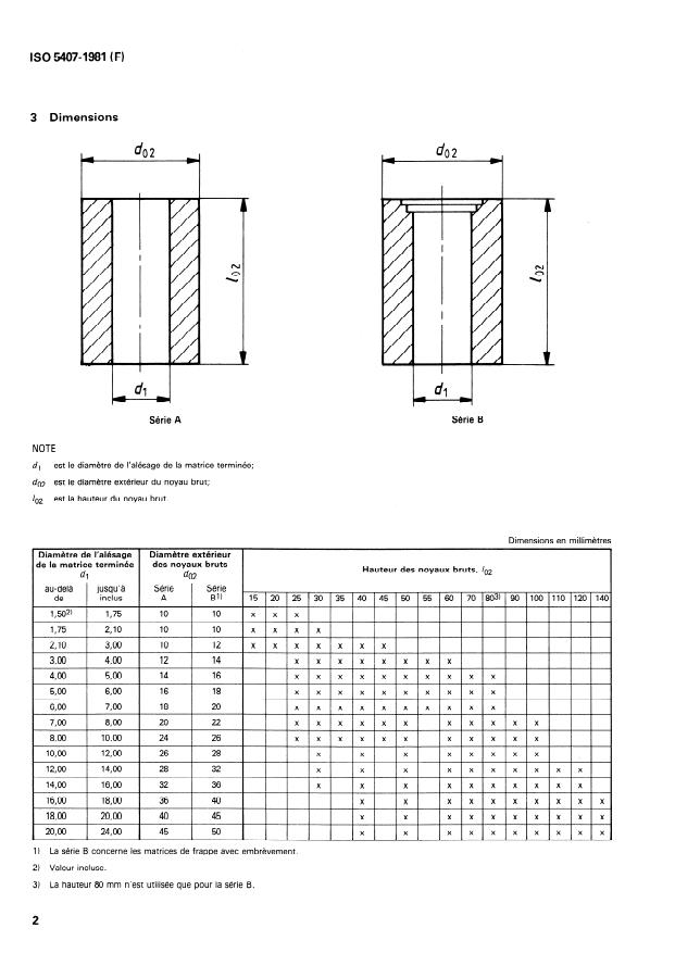 La présente Norme internationale fixe les dimensions et les tolérances des noyaux bruts en métaux-durs pour matrices de frappe à
