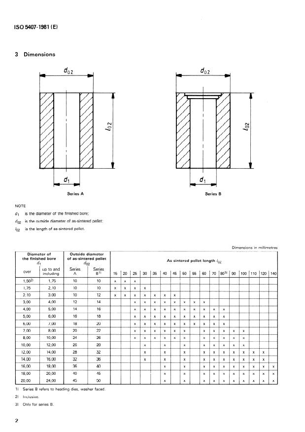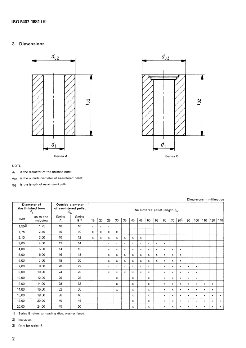 Two pellet series, Series A and Series B, are referenced with differing dimensional ranges to suit various heading die configurations. Series B relates to washer-faced dies.Reference standards