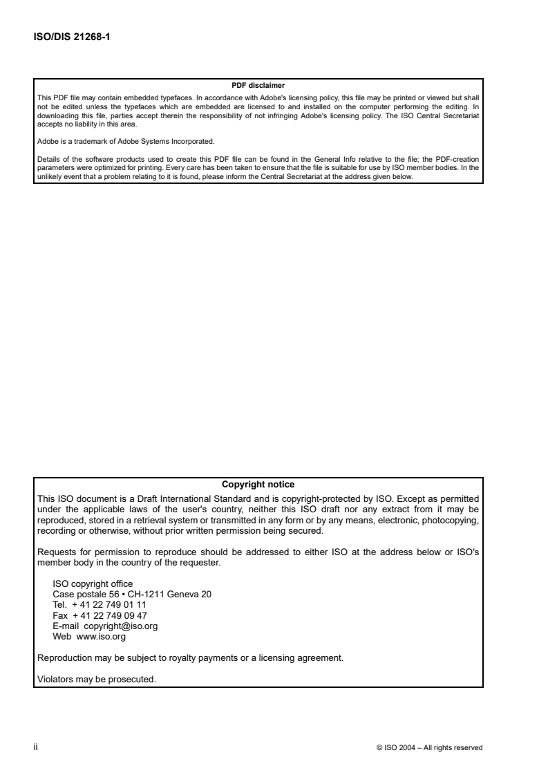 DRAFT INTERNATIONAL STANDARD ISO/DIS 21268-1