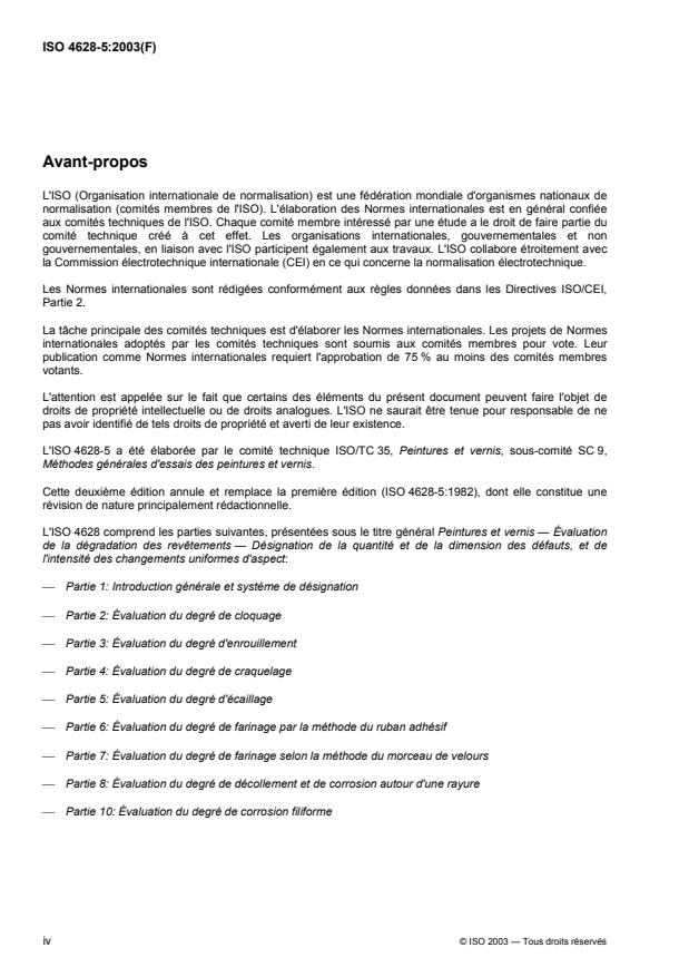 Cette deuxième édition annule et remplace la première édition (ISO 4628-5:1982), dont elle constitue une