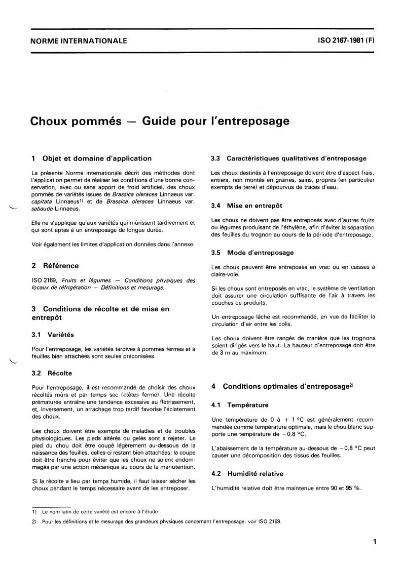 ISO 2167:1981 is a standard published by the International Organization for Standardization (ISO). Its full title is "Round-headed cabbage — Guide to storage". This standard covers: Round-headed cabbage — Guide to storage