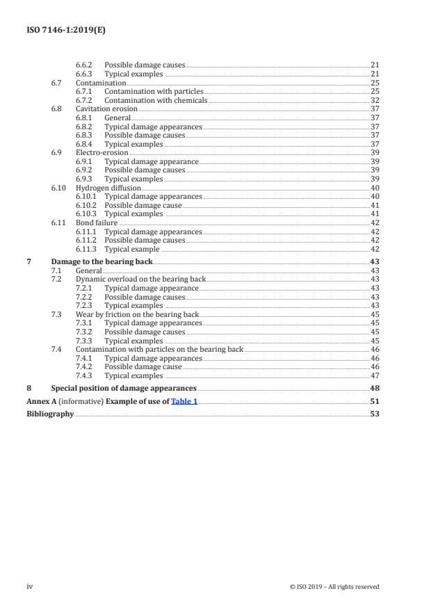 This document defines, describes and classifies the characteristics of damage occurring in service to hydrodynamically lubricated metallic plain bearings and journals. It assists in the understanding of the various characteristic forms of damage which can occur. Consideration is restricted to damage characteristics which have a well-defined appearance and which can be attributed to particular damage causes with a high degree of certainty. Various appearances are illustrated with photographs and diagrams.
