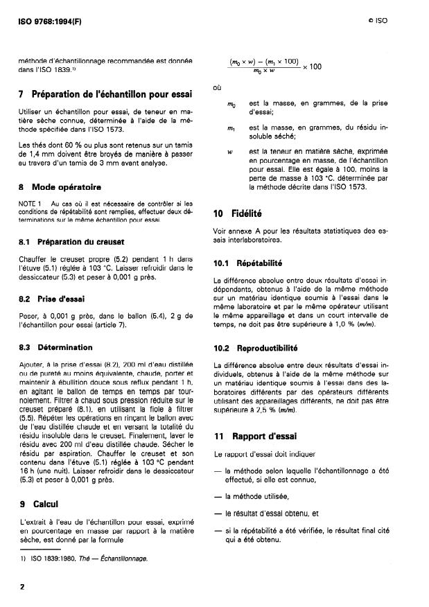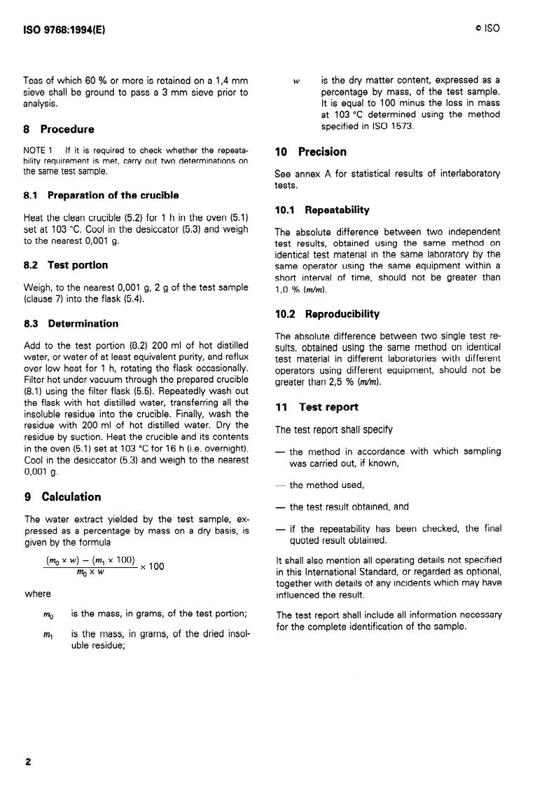 ISO 9768:1994 - Tea — Determination of water extract Released:7/28/1994