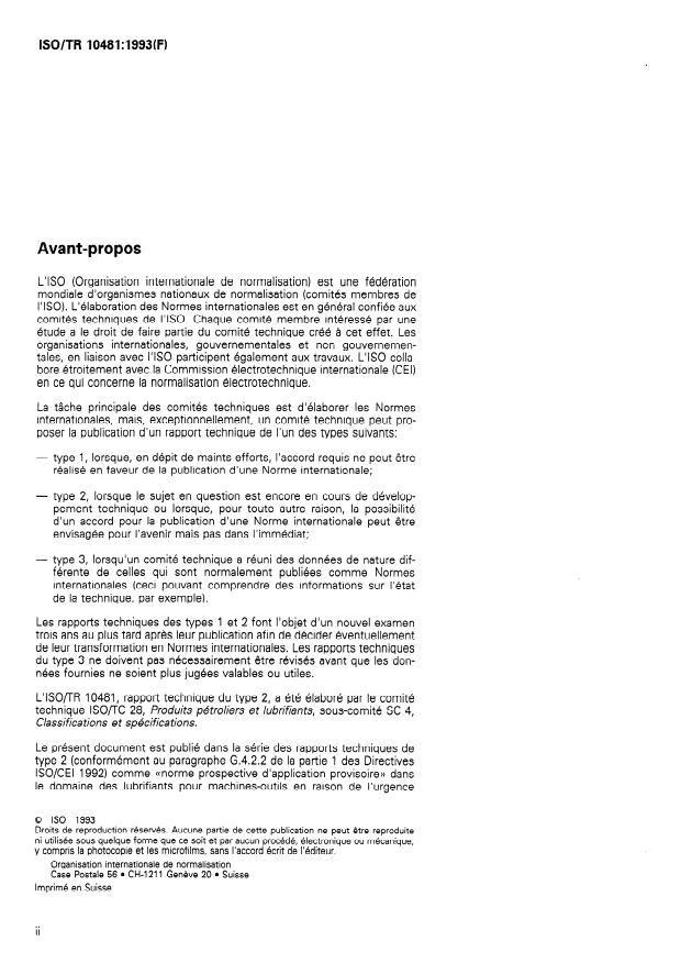 ISO/TR 10481:1993 - Lubrifiants, huiles industrielles et produits connexes -- Classe L -- Spécifications des catégories L-AN, L-FC, L-FD et L-G utilisées pour les machines-outils
