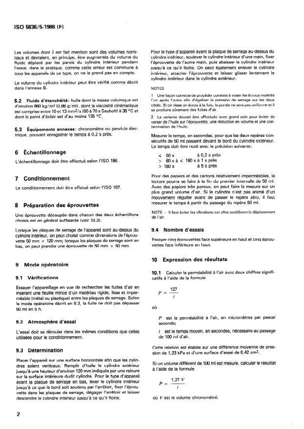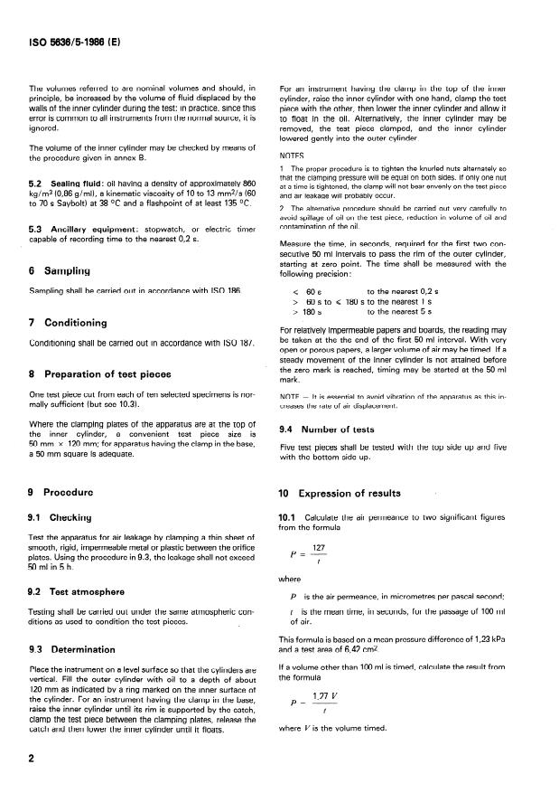 ISO 5636-5:1986 - Paper and board -- Determination of air permeance (medium range)