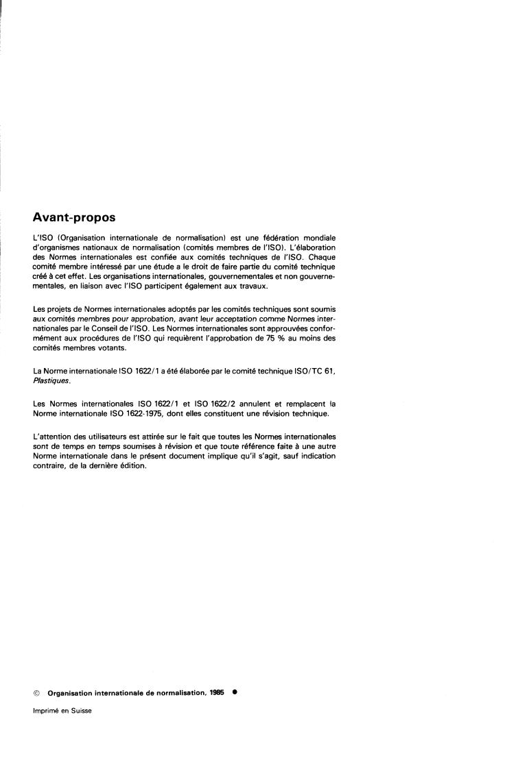 La Norme internationale IS0 1622/1 a été élaborée par le comité technique ISO/TC 61,