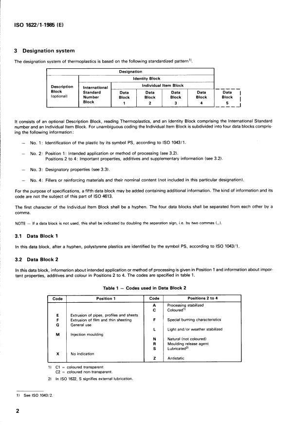 ISO 1622-1:1985 - Plastics — Polystyrene (PS) moulding and extrusion materials — Part 1: Designation Released:12/19/1985
