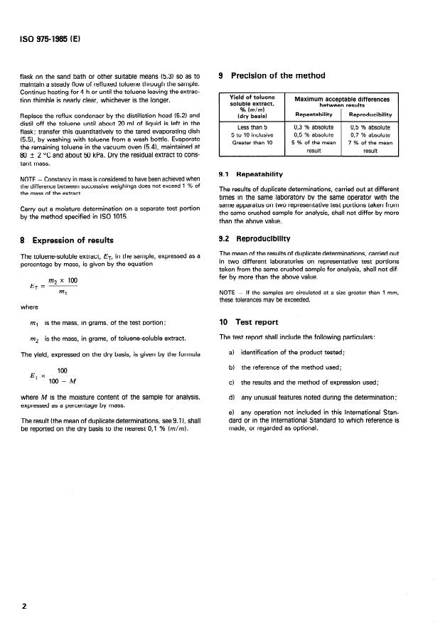 ISO 975:1985 - Brown coals and lignites -- Determination of yield of toluene-soluble extract