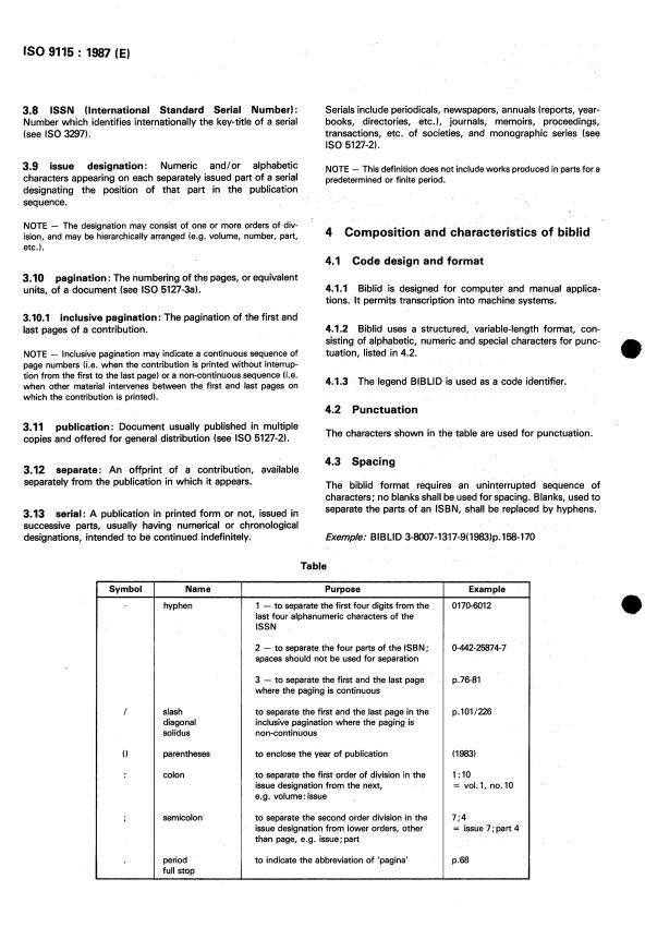 ISO 9115:1987 - Documentation — Bibliographic identification (biblid) of contributions in serials and books Released:7/30/1987
