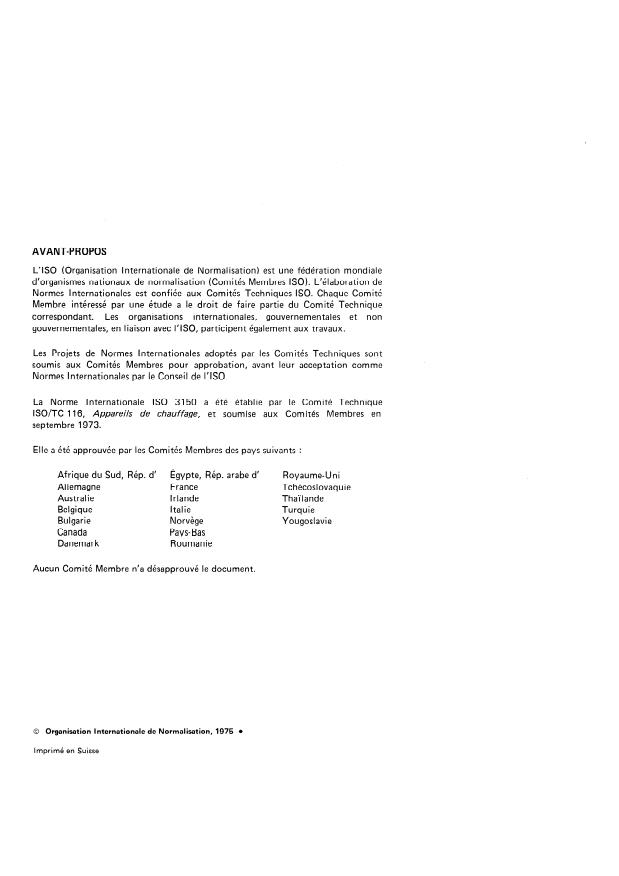 CDU 697.358 Réf. no : ISO 3150-1975 (F)