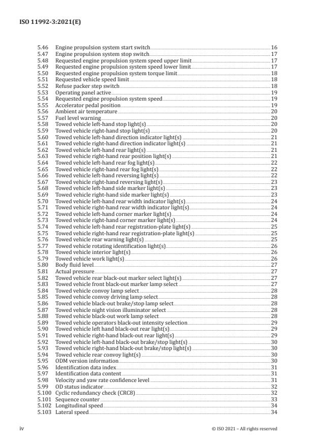 Keywords: ISO 11992-3:2021, application layer, towing and towed vehicles, vehicle-to-trailer communication, object detection (OD), electrical connections.