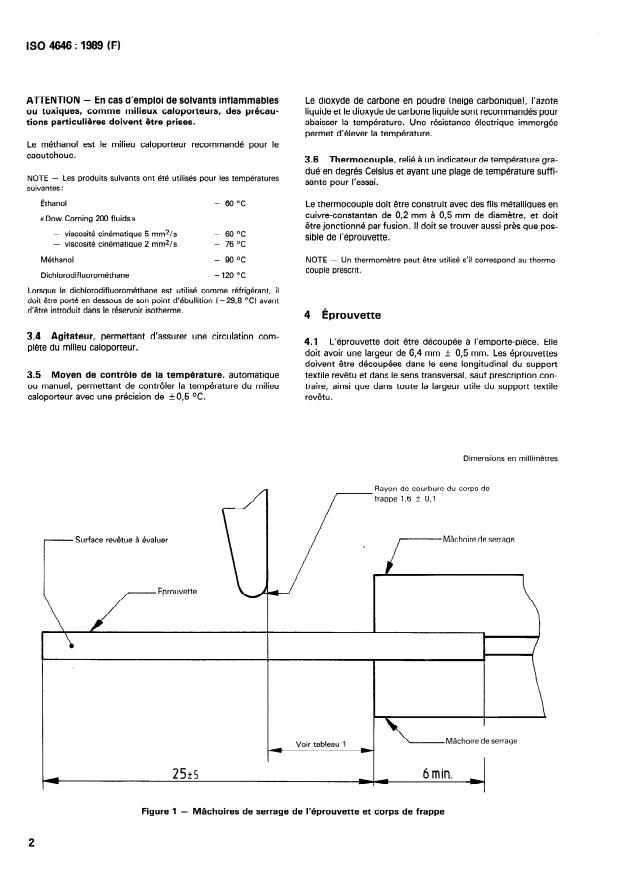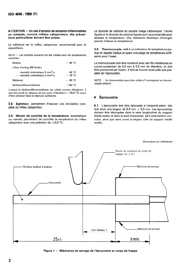 ISO 4646:1989 - Supports textiles revetus de caoutchouc ou de plastique -- Essai de choc a basse température
