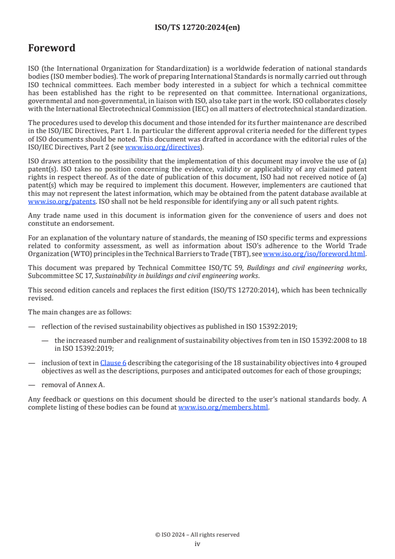 REDLINE ISO/TS 12720:2024 - Développement durable dans les bâtiments et les ouvrages de génie civil — Lignes directrices pour l'application des principes généraux de développement durable de l'ISO 15392 Released:26. 06. 2025