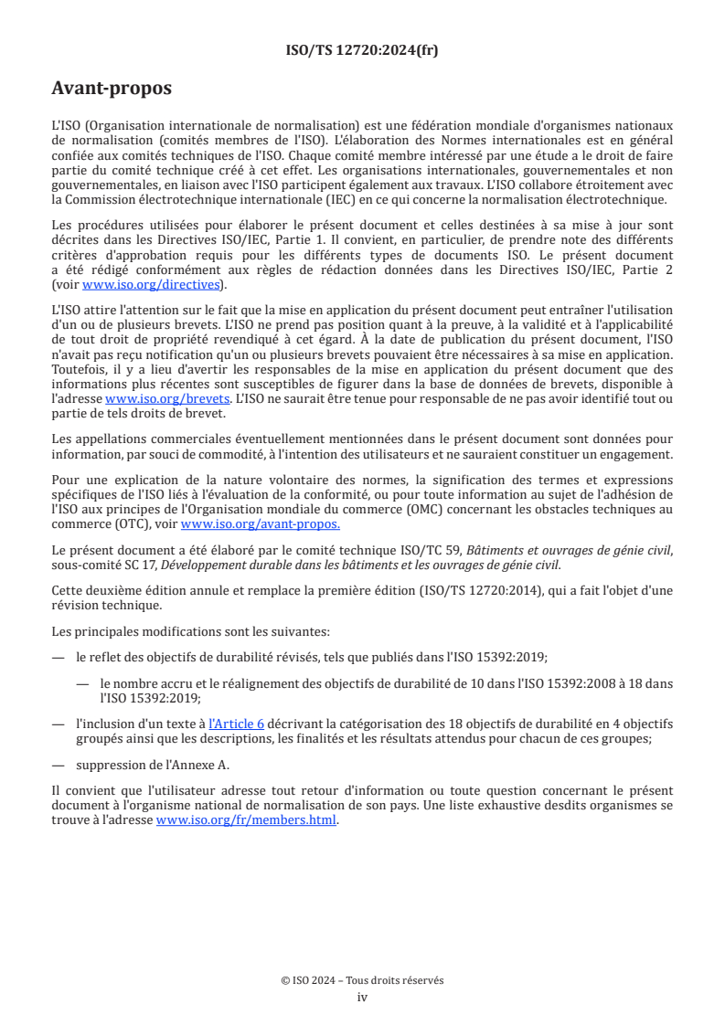 ISO/TS 12720:2024 - Développement durable dans les bâtiments et les ouvrages de génie civil — Lignes directrices pour l'application des principes généraux de développement durable de l'ISO 15392 Released:26. 06. 2025