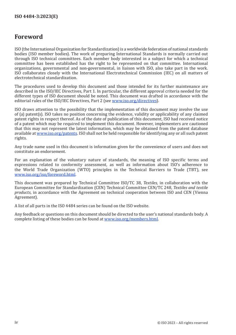 ISO 4484-3:2023 is a standard published by the International Organization for Standardization (ISO). Its full title is "Textiles and textile products - Microplastics from textile sources - Part 3: Measurement of collected material mass released from textile end products by domestic washing method". This standard covers: This document specifies a method for measuring the collected material mass released from the outlet hose of a standard washing machine, described in ISO 6330, through the washing process. NOTE The washing condition of textile end products is indicated by the care labelling according to ISO 3758. This document is applicable to textile end products (including consumer textile products, such as clothing made of fleece, shirts, trousers, blouse, etc.) and home textile end products (such as, blankets, rugs, curtains, etc.) which are composed of all fibres such as natural fibres, and man-made fibres, including mixture of the fibres that can be washed in a domestic washing machine. This document is not applicable to fabrics and cut textile products. It does not cover the test for washing machines and detergents as well.