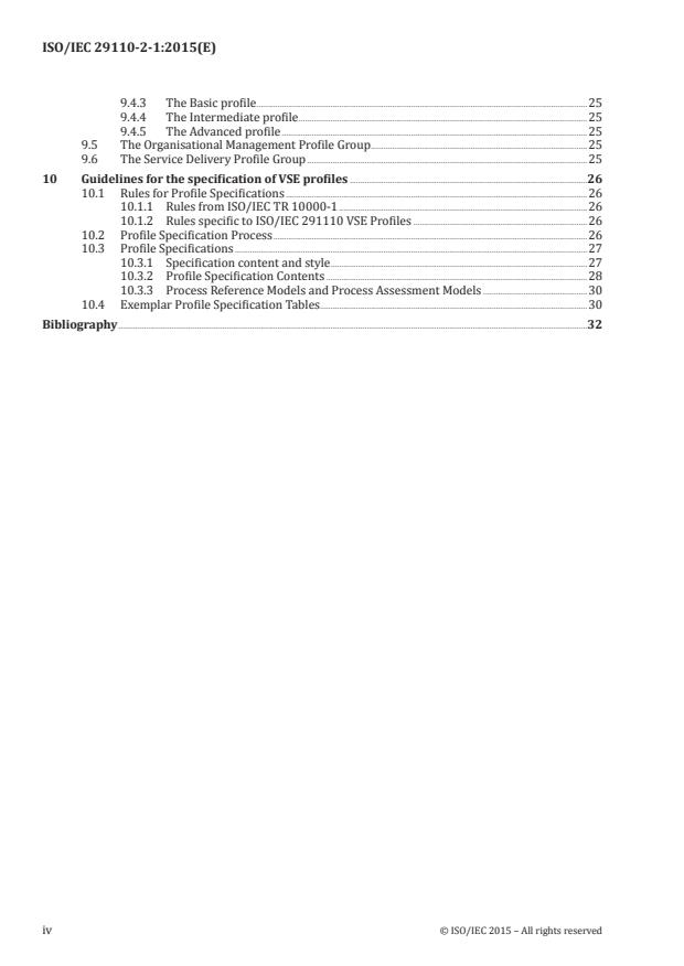 1.1 Fields of application ISO/IEC 29110-2-1:2015 is applicable to Very Small Entities (VSEs). The lifecycle processes described in ISO/IEC 29110 are not intended to preclude or discourage their use by organizations bigger than VSEs. However, certain issues faced by large organizations might not be covered by ISO/IEC 29110. The lifecycle processes defined in ISO/IEC 29110 can be used by VSEs when acquiring and using, as well as when creating and supplying, a software, and systems. They can be applied at any level in a software and systems structure and at any stage in the lifecycle. The processes described in ISO/IEC 29110 are not intended to preclude or discourage the use of additional processes that VSEs find useful. ISO/IEC 29110-2-1:2015 introduces the major concepts for software and systems engineering profiles for VSEs, and defines the terms common to the set of documents associated with VSE profiles. It establishes the logic behind the definition and application of profiles. It specifies the elements common to all standardized profiles (structure, conformance, assessment). ISO/IEC 29110-2-1:2015 is applicable to all profiles. 1.2 Target audience ISO/IEC 29110-2-1:2015 is targeted at authors and reviewers of standardized profiles, authors of other parts, and authors of other VSE profiles.
