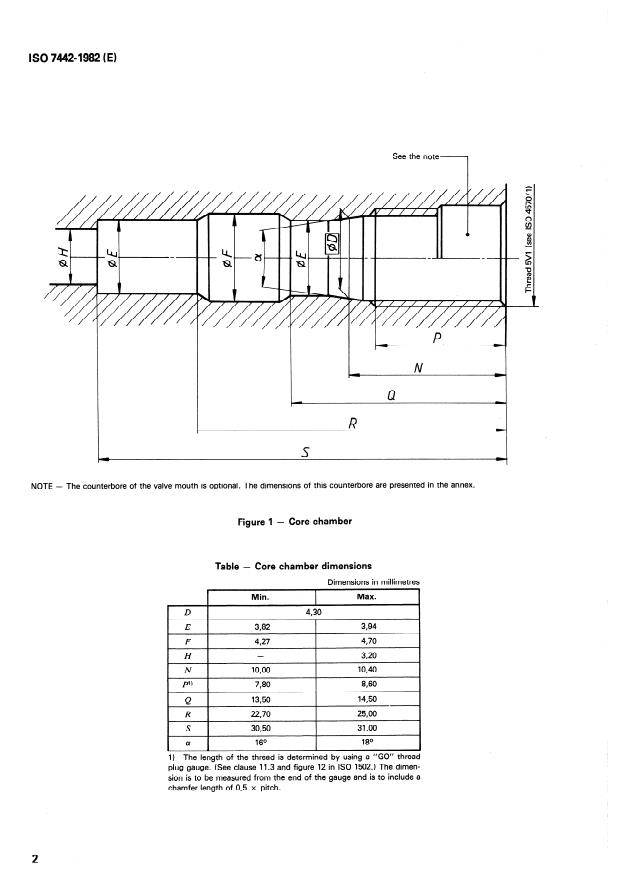 ISO 7442:1982 - Tyre valves -- ISO core chamber No. 1
