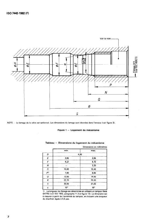 ISO 7442:1982 - Valves pour pneumatiques -- Logement du mécanisme ISO no 1