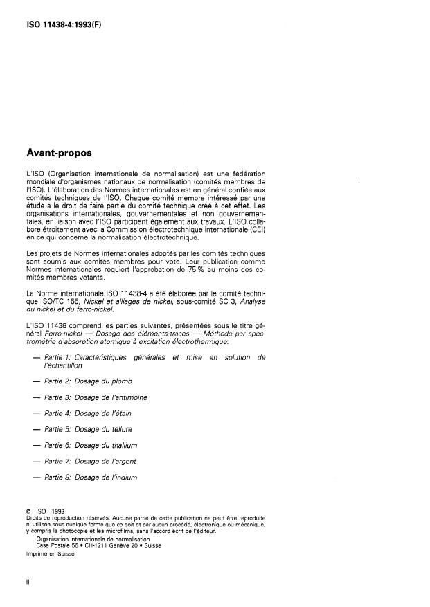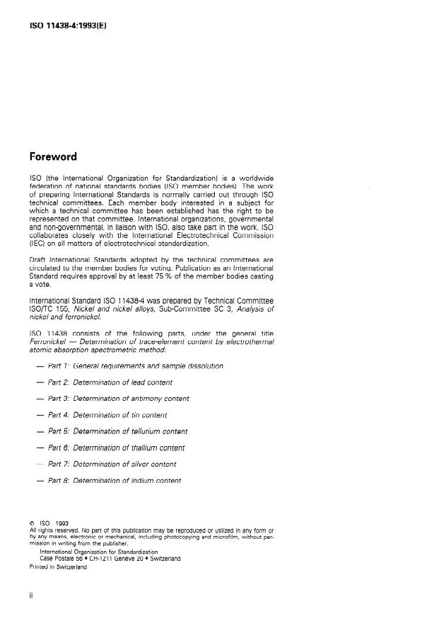 ISO 11438-4:1993 - Ferronickel -- Determination of trace-element content by electrothermal atomic absorption spectrometric method