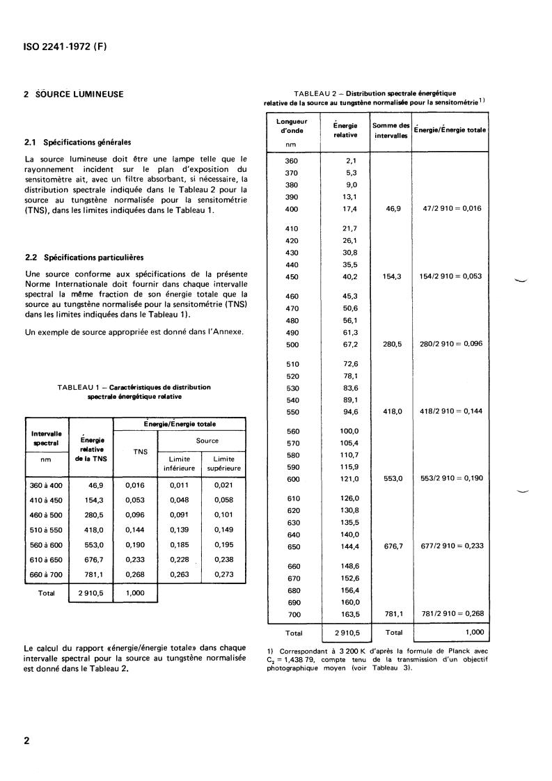 l'autre est équilibré pour des sources au tungstène portées à 1 OBJET ET DOMAINE D'APPLICATION