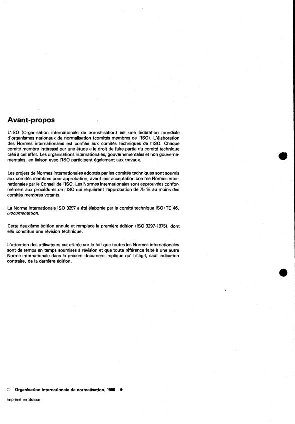 - CDU 025.46:05 + 07 Réf. no : IS0 3297-1986 (FI