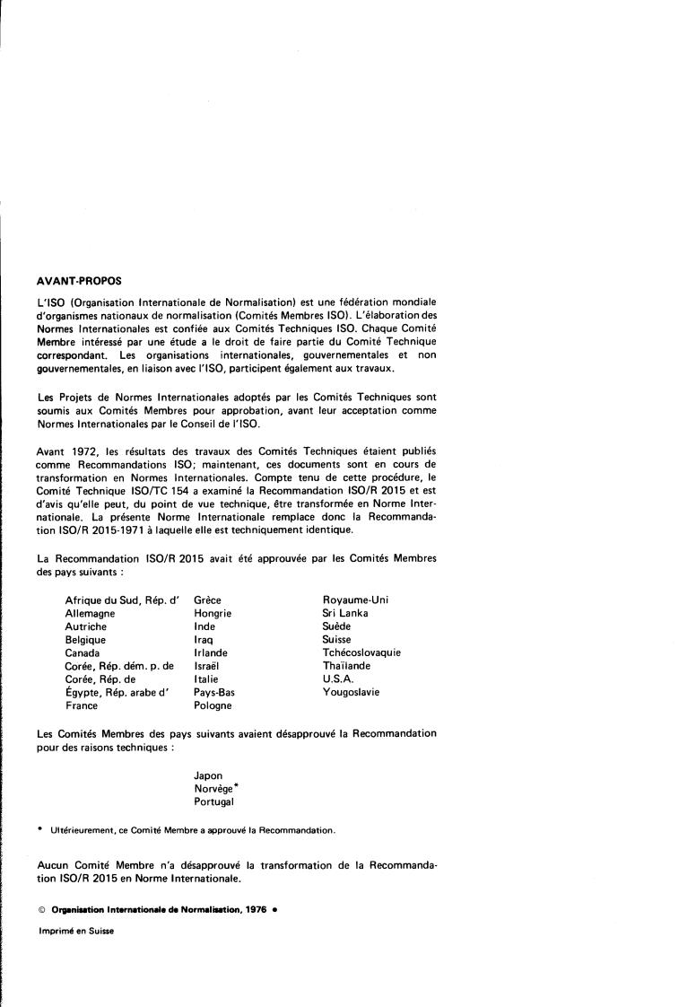 NORME INTERNATIONALE IS0 2015-1976 (F)
