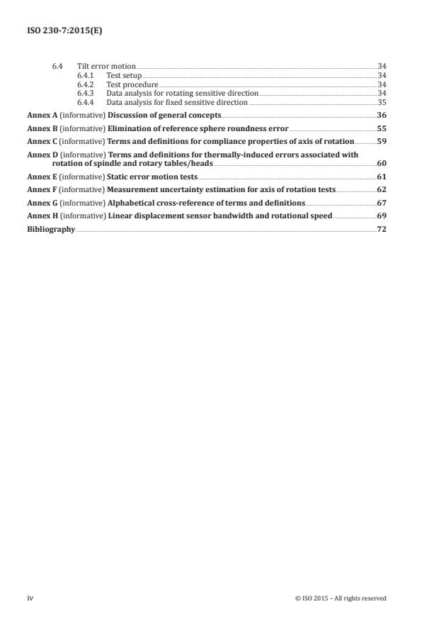 - Comprehensive terms for error motion types, directional decomposition, polar plots, and compliance properties (see Annexes and Annex G).