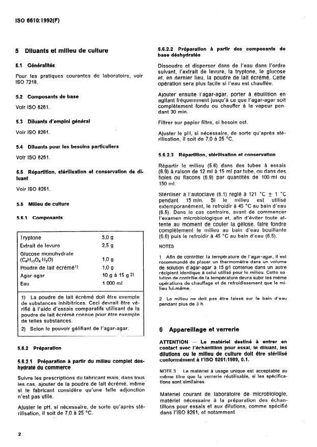 ISO 6610:1992 is a standard published by the International Organization for Standardization (ISO). Its full title is "Milk and milk products — Enumeration of colony-forming units of micro-organisms — Colony-count technique at 30 degrees C". This standard covers: Specifies the principle, the diluents and culture medium, the apparatus and glassware, the sampling and procedure, the expression of results, the repeatability and the test report.