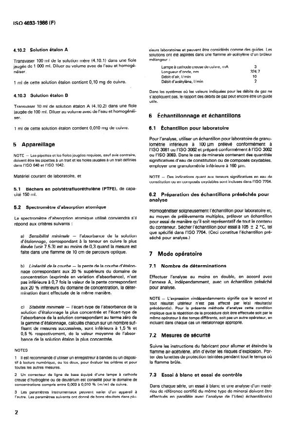 ISO 4693:1986 - Minerais de fer -- Dosage du cuivre -- Méthode par spectrométrie d'absorption atomique dans la flamme
