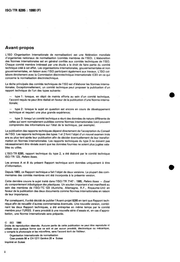 ISO/TR 8285:1990 - Paliers lisses -- Évaluation des propriétés tribologiques des matériaux a base de polymeres