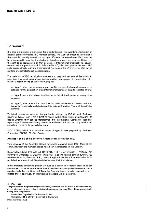 ISO/TR 8285:1990 - Plain bearings -- Evaluation of the tribological properties of polymer-based materials