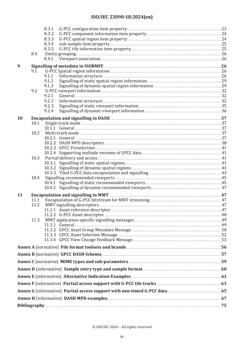 Keywords: ISO/IEC 23090-18, G‑PCC, point cloud compression, ISOBMFF, DASH, MMT, geometry-based point cloud.