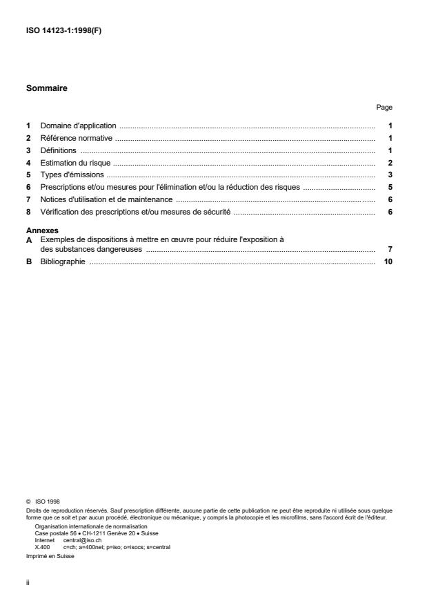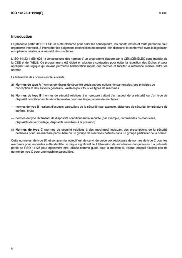 ISO 14123-1:1998 - Sécurité des machines -- Réduction des risques pour la santé résultant de substances dangereuses émises par des machines