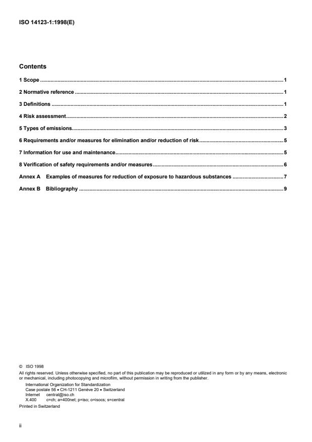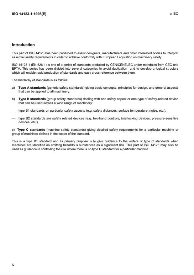 ISO 14123-1:1998 - Safety of machinery -- Reduction of risks to health from hazardous substances emitted by machinery